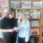 В библиотеке был оформленинформационный буклет «Геноцид: сожженные деревни, гетто, казни: трагические события в истории моего края». Школьники имели возможность ознакомиться с ним, а также с литературой, посвященной геноциду белорусского народа. Они рассматривали документы и фотографии, делились своими мыслями о недопустимости повторения подобных ужасов, о человеческих трагедиях, которые принесла война, и о важности сохранения мира на планете.